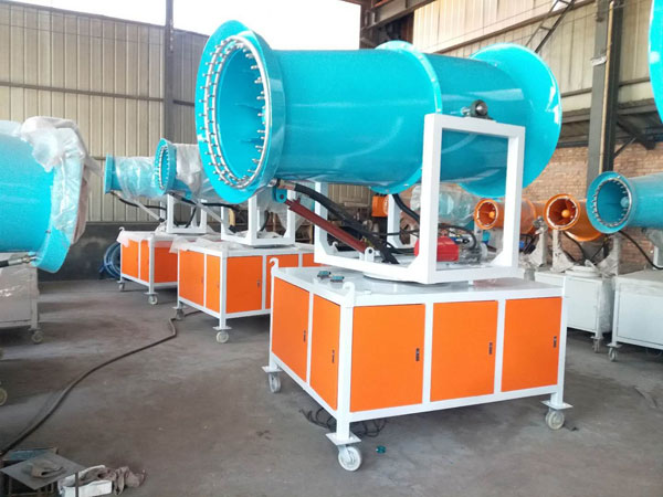 选择除尘雾炮机-喷雾机应首先考虑除尘喷雾机所选风机制造是否合格,设计是否合理,因为风机是影响除尘喷雾机射 程的主要因素,风机计设、制造不合理,将直接影响除尘喷雾机的雾化效果及降尘质量。 除尘 雾炮机- 喷雾机是依靠风机鼓出的气流将雾滴进一步的破碎雾化,并使雾粒具有足够的动能射向远方。这样微小的雾粒就可